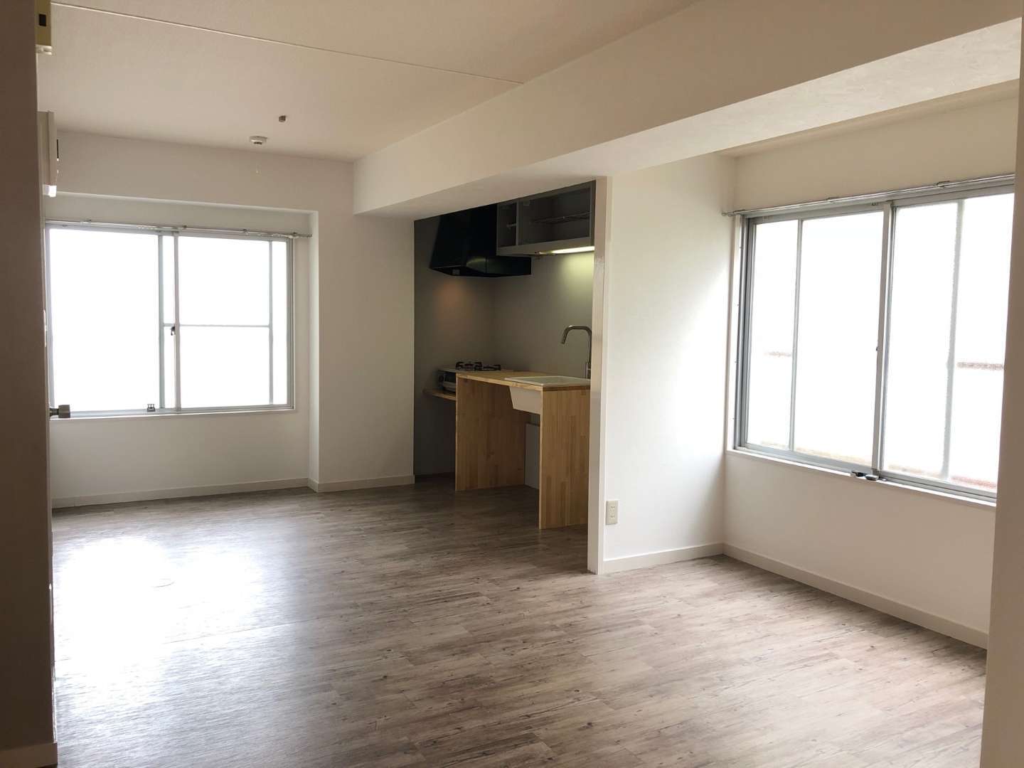 元々は2部屋だったお部屋を仕切っていた壁を撤去し、1つの大きなリビングルームとしました。さらには明るくて広々とした雰囲気を醸し出すため、明るい色調と床材を使用しました。