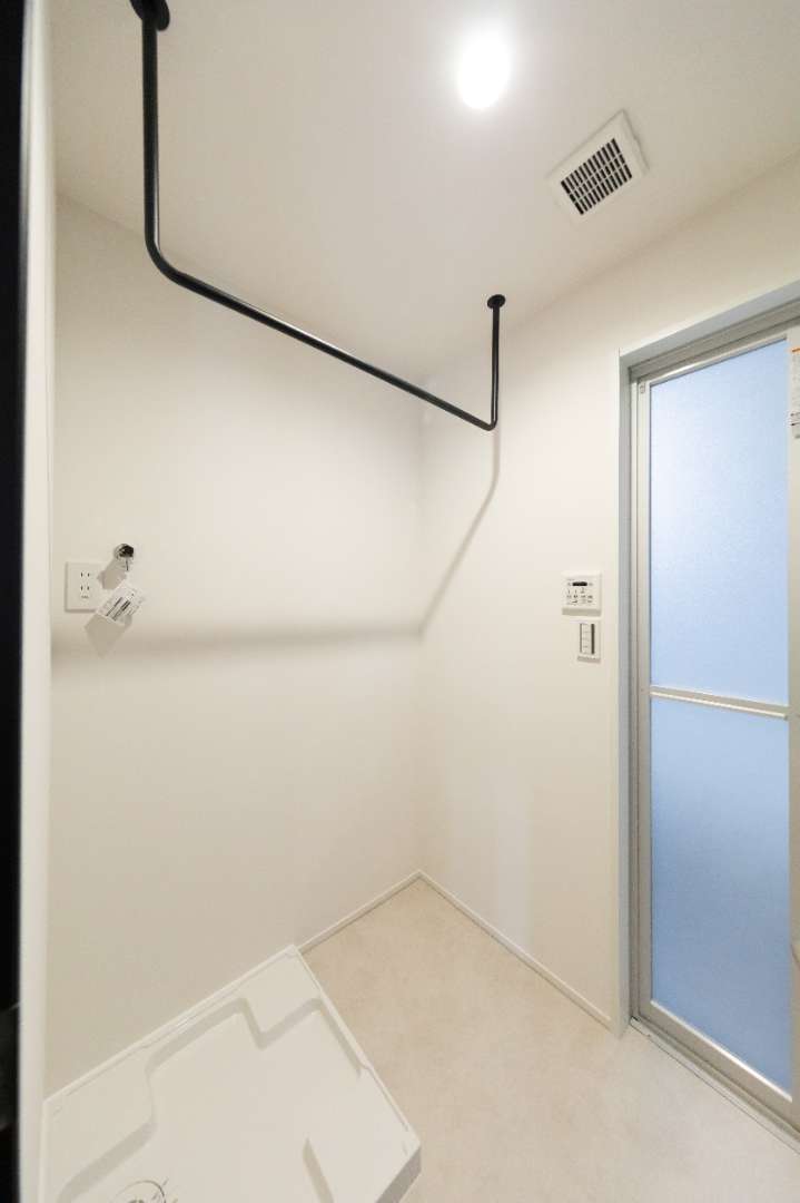 脱衣には室内干し用のハンガーパイプを取り付けています。