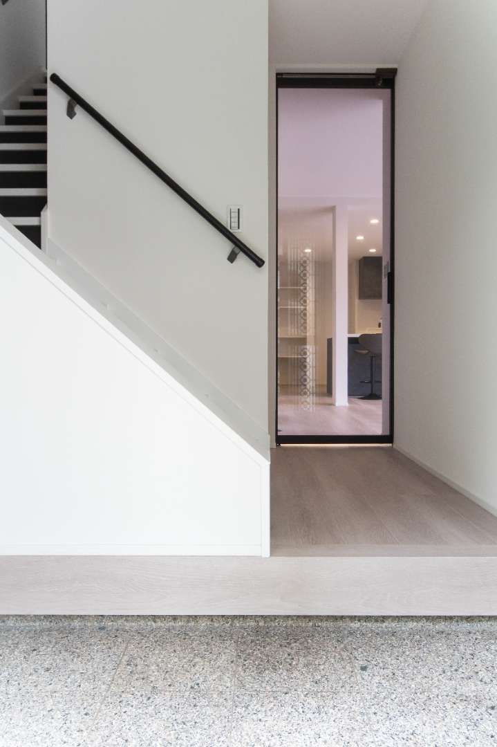 階段の勾配を緩くしたいとのご希望もあったので、階段の登り口をずらして傾斜を調整しました。